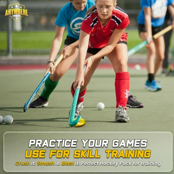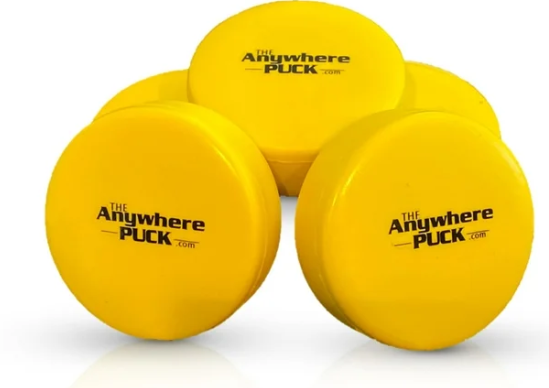 The ANYWHERE Puck is a great training aid for hockey players. Its soft material can be used both indoors and outside. When miss hit, the Anywhere Puck will pop up or down in an egg shape to assist in your hockey skill training. When hit correctly the practice puck will fly straight and flat. By using The Anywhere Puck you are not only able to practice anytime, anywhere, but because of the immediate feedback you create a more fundamentally sound stroke. The Anywhere Puck is the perfect hockey training tool and this foam practice puck will surely help to improve your game, it is a foam puck that causes no damage. The Anywhere Puck is great for between games, warm-ups and in restricted areas. It can be used inside or outside without proposing a threat to property. It is the foam puck that provides instant feedback. The Anywhere Puck is truly the all-purpose training puck. 6 PACK