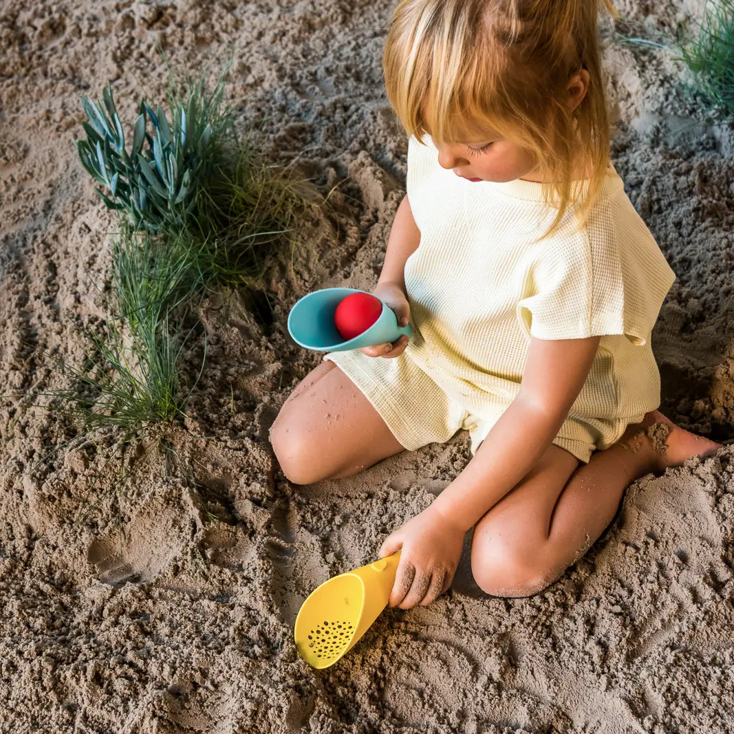 The Cuppi inspires creativity on sand, land, or water. Use the shovel to scoop sand, create tracks for the ball, or make patterns with its unique hole for sand and water fun.  Ideal travel game: compact, lightweight and versatile Ergonomic design for easy use, stacking and disassembly Open end toy: stimulates creativity Stack-and-click for easy storage: make sure to remove the sand before clicking back together Made of durable, recyclable plastic, BPA, latex and phthalate free