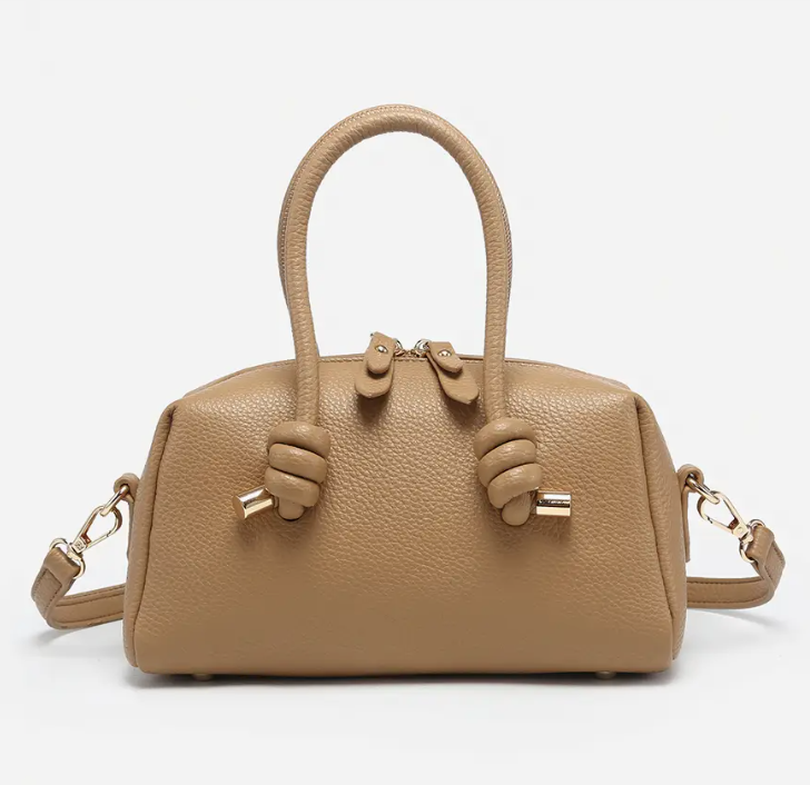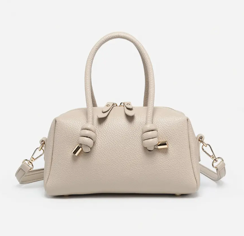 The Barcelona Mini Satchel/Crossbody with Knotted Handles is perfect for adding a touch of elegance to your fall wardrobe, seamlessly complementing both casual and dressy autumn outfits.