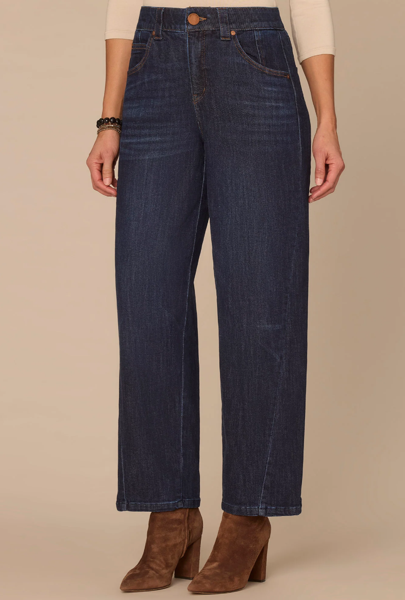 The Barely Barrel Leg is slightly fitted at the hips, with a relaxed, subtle curve from the thighs that tapers back at the ankle. Engineered with "Ab"solution® fit technology to smooth, support, and enhance your shape—giving you everything from a flatter tummy to a perkier rear view.