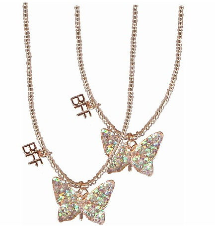 Butterfly necklaces made just for best friends! this set of 2 necklaces are made with clear iridescent beads with batching butterfly and BFF charms! This set makes the perfect gift for best friends or siblings!