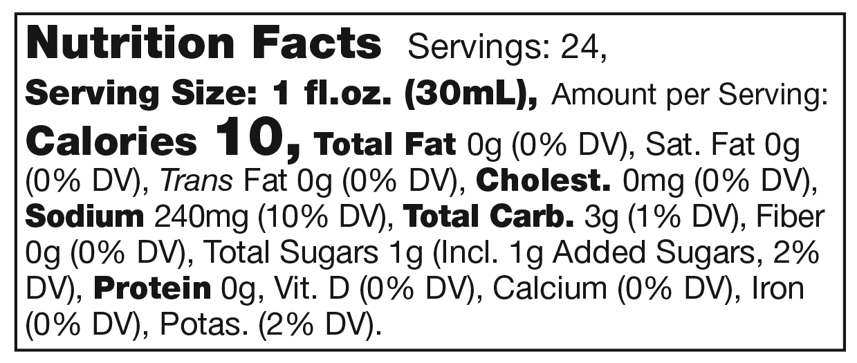 IngredientsWater, Tomato Paste, Horseradish (horseradish roots, vinegar, salt), Worcestershire Sauce (distilled vinegar, molasses, water, sugar, onions, anchovies [fish], salt, garlic, cloves, tamarind extract, natural flavors, chili pepper extract), Lemon Juice Concentrate, Salt, Brown Sugar, Cayenne Pepper Sauce (aged cayenne red peppers, vinegar, salt, garlic), Lime Juice Concentrate, Black Pepper, Ground Celery Seeds .