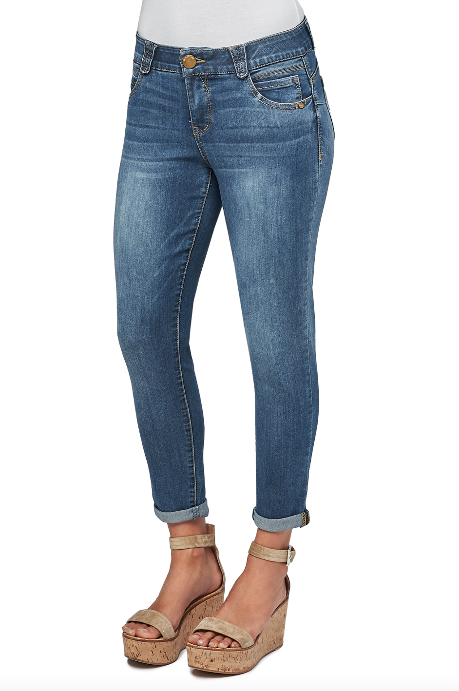 A staple you must always have in your wardrobe, the "Ab"solution® Ankle Skimmer from Democracy offers tummy control with slimming mesh panels in a stretch blue denim in an artisanal wash with hand sanding.