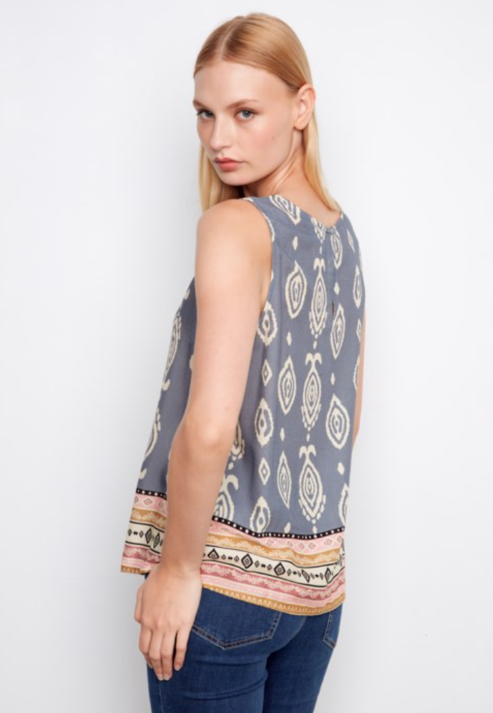 Add a touch of effortless style to your wardrobe with Charlie B’s Border Print Tank. Made from lightweight, breathable fabric, this tank features a flattering fit and eye-catching border print that elevates any casual look. Perfect for warm-weather wear or layering under jackets and cardigans, it combines comfort with chic design. Whether paired with jeans, shorts, or skirts, this versatile tank is a must-have for easy, stylish outfits all season long.