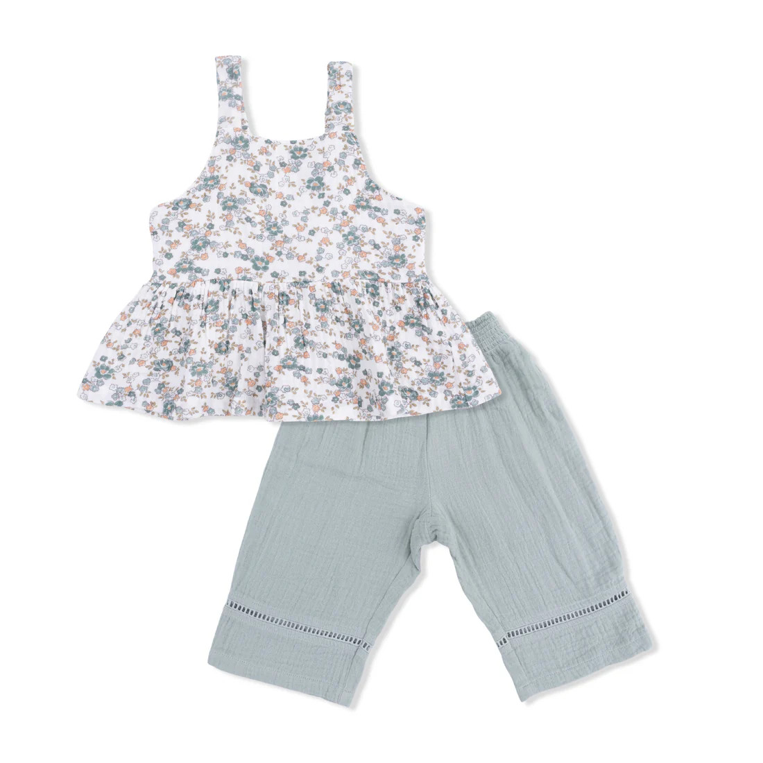 Your little one will stay cool and stylish in our Peplum Tank & Smocked Waist Pants Set, made from soft, breathable organic muslin! Featuring delicate ladder trim details, a smocked back for the perfect fit, and flowy smocked waist pants, this set is as comfy as it is adorable. Perfect for playdates, special outings, or twirling through sunny days!