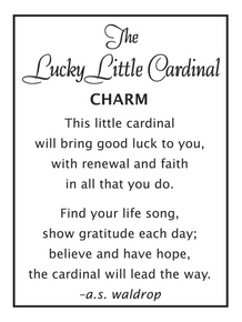 This little cardinal will bring good luck to you, with renewel and faith in all that you do. Find your life song, show gratitude each day; believe and have hope, the cardinal will lead the way.