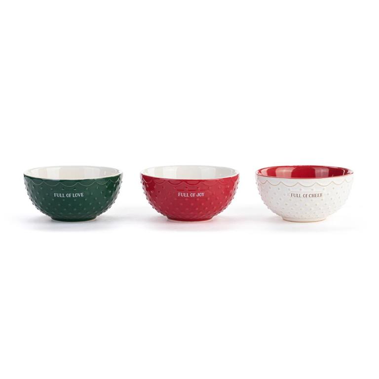 While making time-honored treats with those who bring joy to your world, bake up new together time memories with the Ceramic Christmas Baking Bowls - Set of 3. Fun holiday icons and traditional colors are merrily featured in our festive Baking Holiday Memories collection.