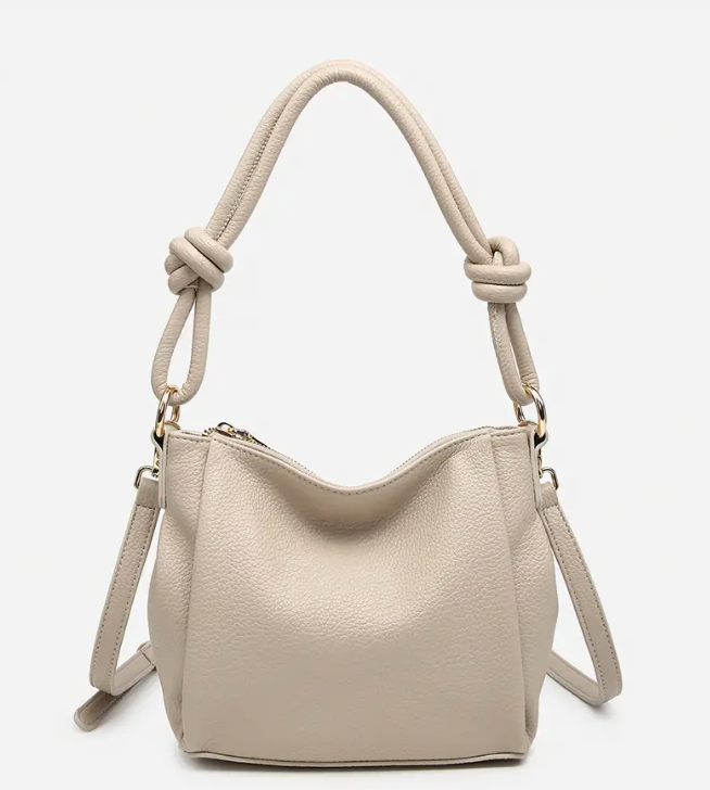 Item Detail: -Knotted Handle: Stylish knotted shoulder strap for a unique look. -Top Zip Closure: Secure your items with ease. -Adjustable/Removable Crossbody Strap: Switch between a shoulder or crossbody carry option. -Multiple Pockets: Back slip pocket, inner open pocket, and inner zipper compartment for organization. Dimensions: -Length: 9.5 inches -Height: 7.5 inches -Depth: 3.25 inches