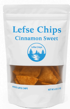 Cinnamon Sweet - Indulge in the irresistible crunch of Lefse Chips, a delightful snack that combines traditional flavors with modern convenience. Enjoy the satisfying crunch of these crispy, baked chips made from a unique blend of ingredients made from Lefsa (Lefsa : Potatoes. Flour. Vegetable Oil. Salt/Other seasonings). Each bag contains 4 oz (113.4 g) of delicious chips, perfect for snacking on the go or sharing with friends and family. The chips are generously seasoned with bold and tantalizing flavors to tantalize your taste buds.