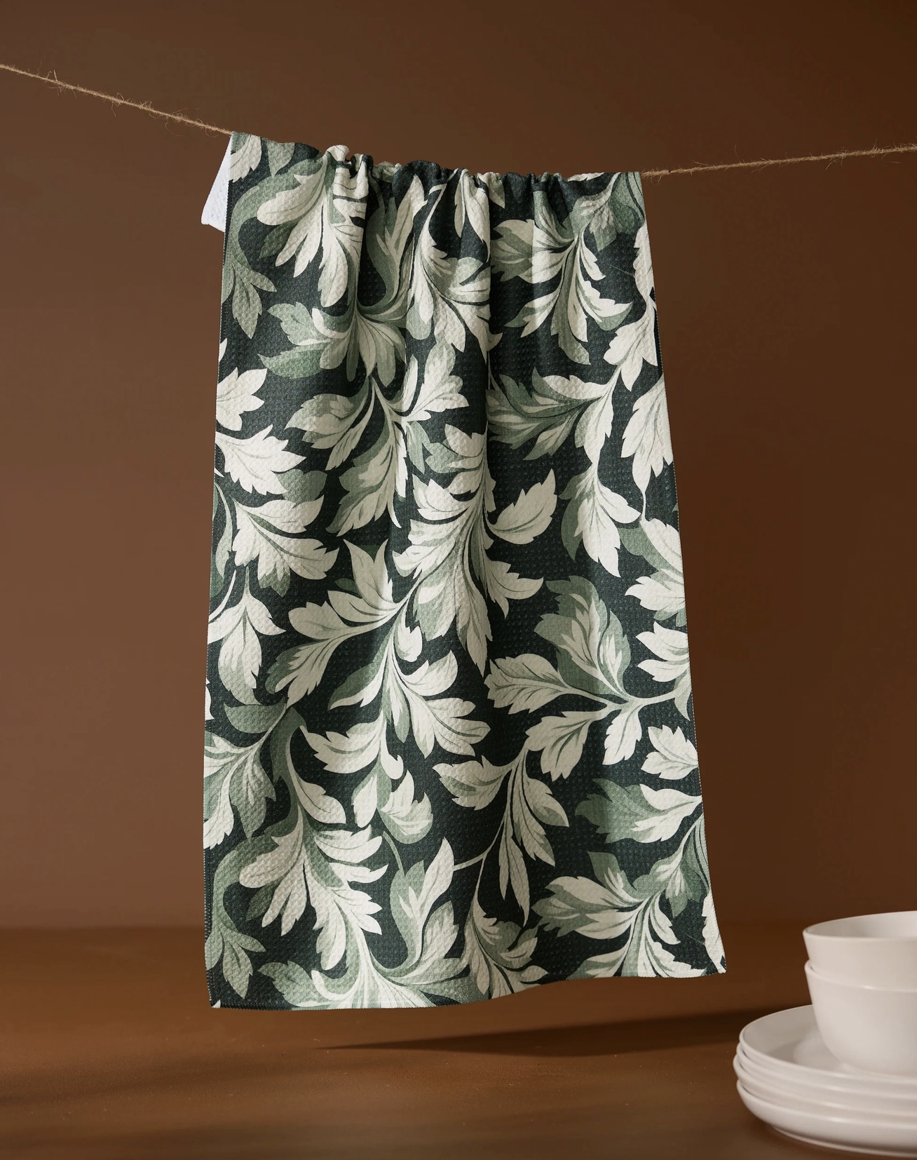 18" x 30" kitchen tea towel made from recycled polyester  |  weight: 320 gsm  |  single-sided print  |  hang loop  |  waffle weave construction  |  quick-drying  |  superior cleaning  |  next-level absorbency Towel