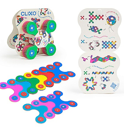 ONE SHAPE, ENDLESS POSSIBILITIES - Be amazed at what you can make with 9 pieces of our simple signature shape. Clixo’s patented, research-based play system is designed to spark creativity and hands-on play with flexible, multisensory pieces that bring hours of fun STEM learning, sensory regulation, stress relief and fine motor development. Click, snap, spin, stack, and flex these versatile pieces to make over 100 2D or 3D builds that can be hung, looped, or even worn!