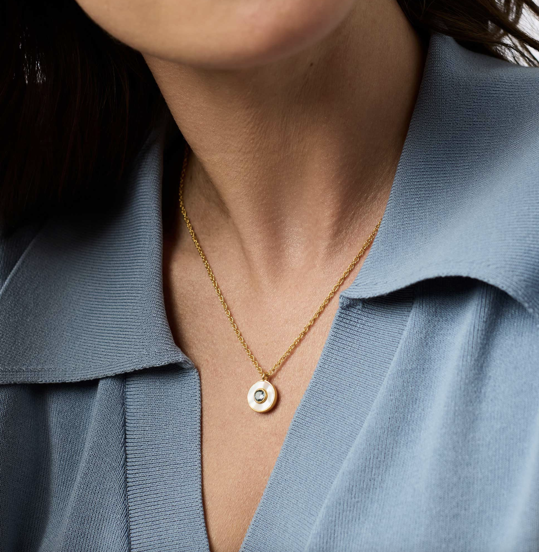 Colette Circle Delicate Necklace - Chalcedony Blue