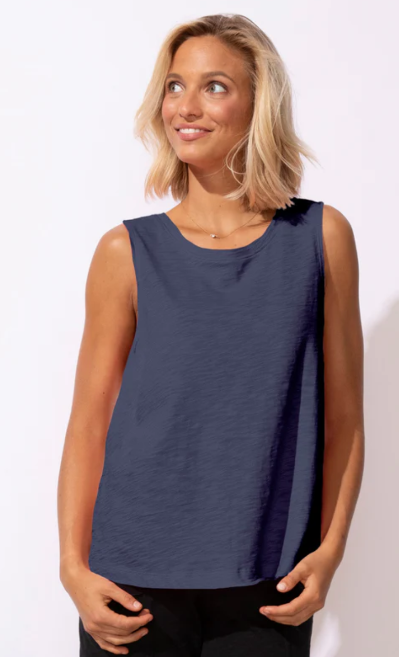 The perfect fit, bra friendly with side vents and a perfectly scooped neck line. An essential warm weather grab + go piece. Our Peruvian Cotton is made from the finest cotton in the world, known for its softness, durability, and strength. Slub-textured yarns give our tees a unique, nuanced texture.