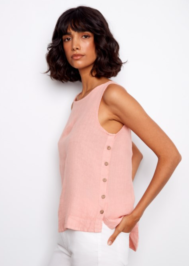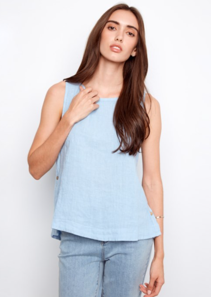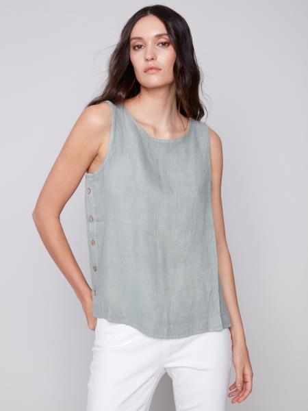 Crisp Linen Button Tank