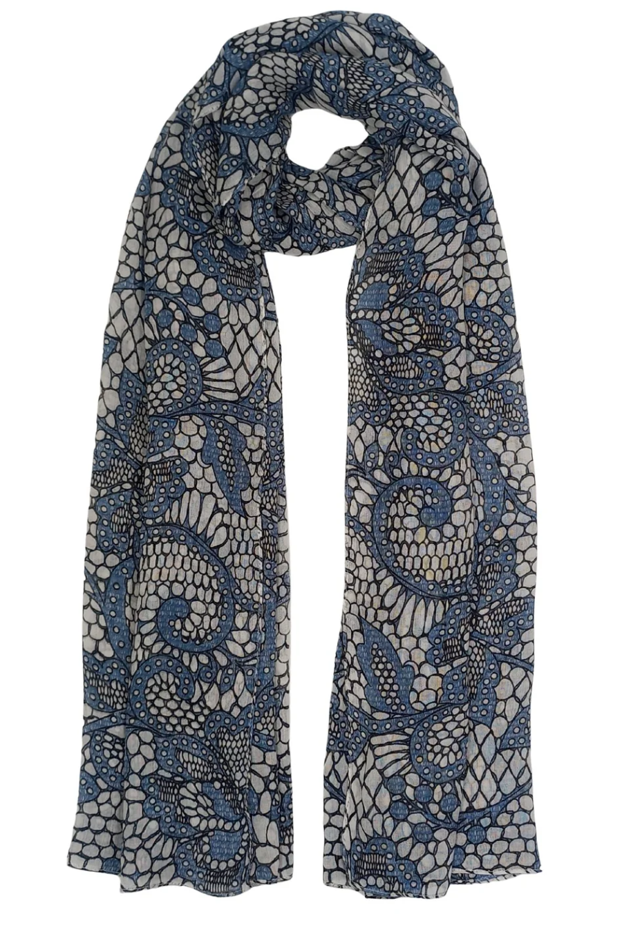 Crochet Print Scarf - Blue