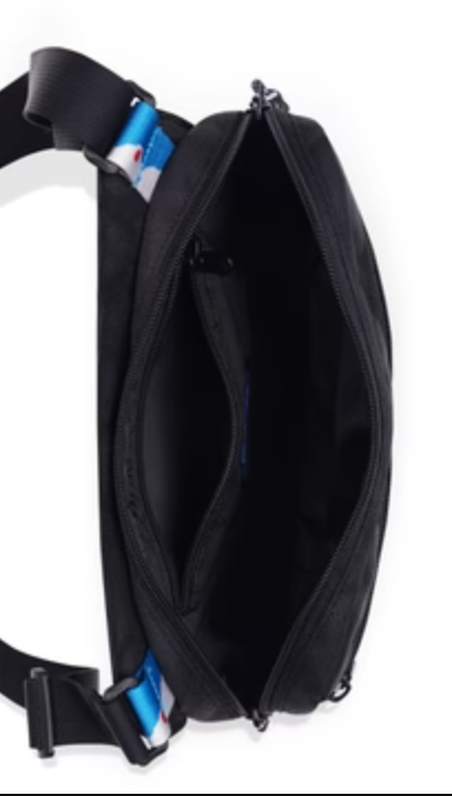 Cross body bag, adjustable webbing shoulder strap with plastic