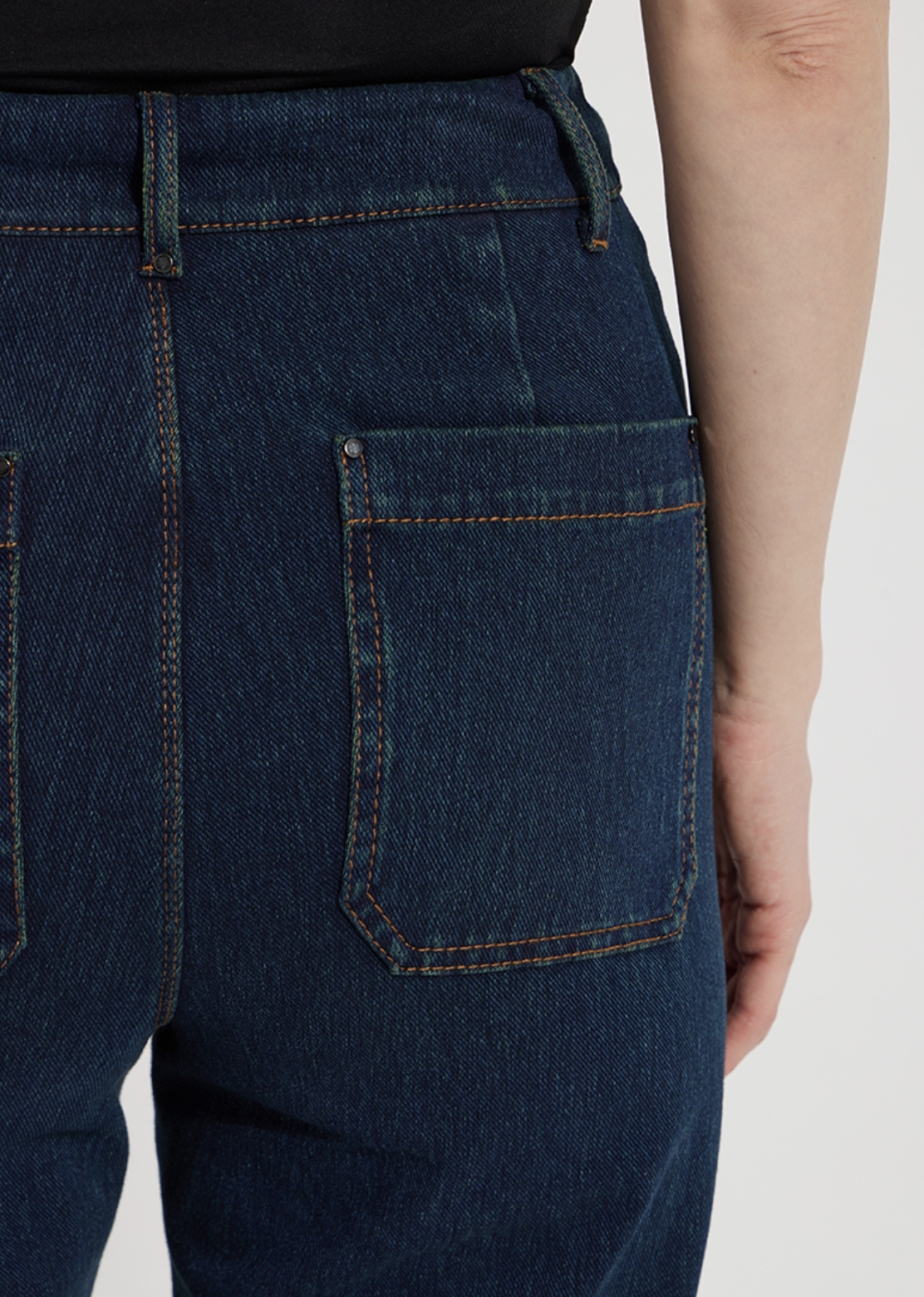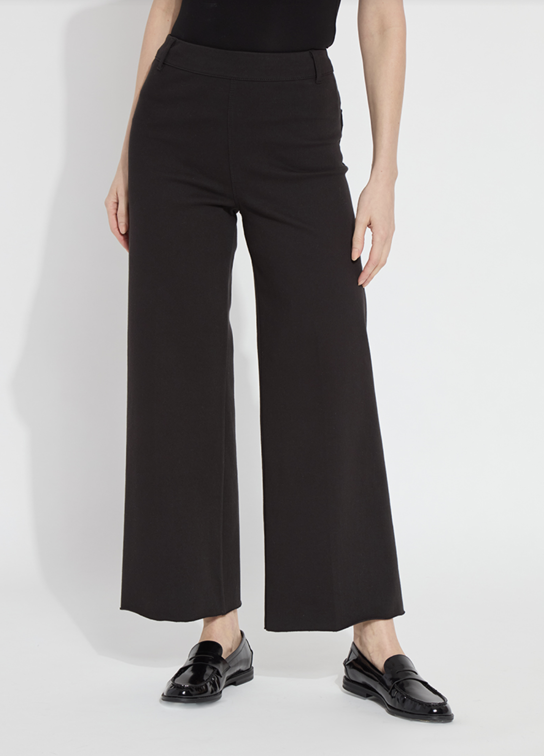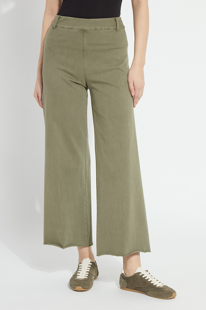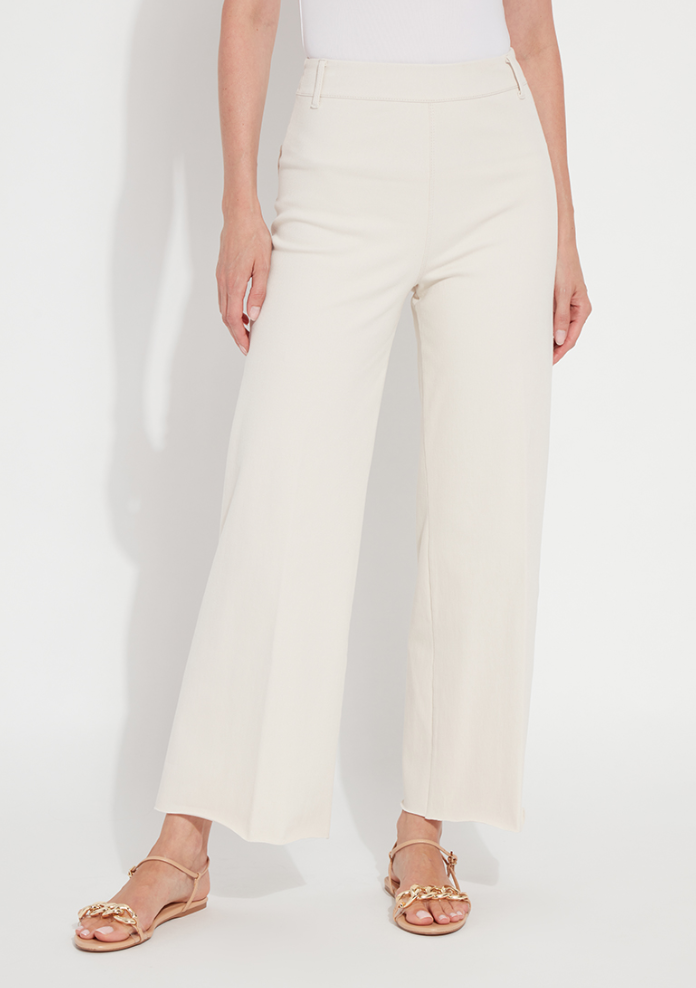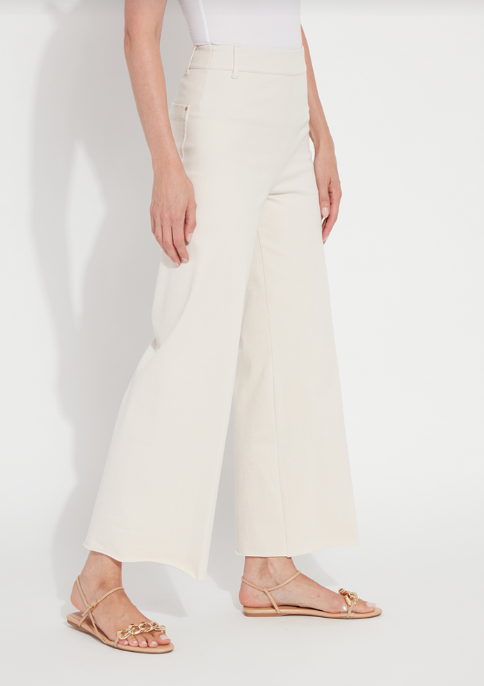 Made from 4-way stretch Knit Denim, these high-waisted, wide-leg jeans feature a concealed patented waistband, back patch pockets with gunmetal studs, beltloops and topstitching. Offering an extra-wide leg without side seams, the Erin High Waist Wide Leg Denim showcases a cropped, ankle length and raw-edge hem that’s simple to shorten. Style these wide-leg jeans with Larissa Satin Jersey Top, Lilith Cardigan Sweater and ankle booties.