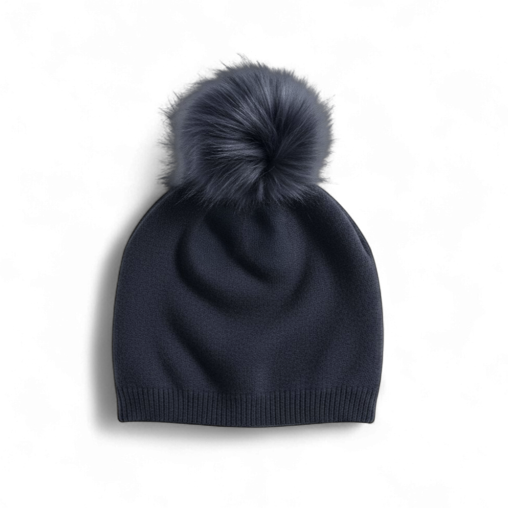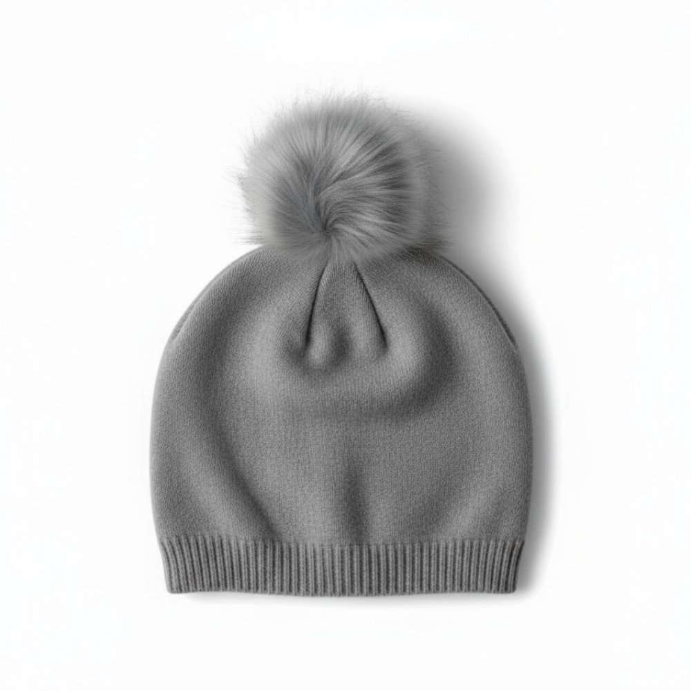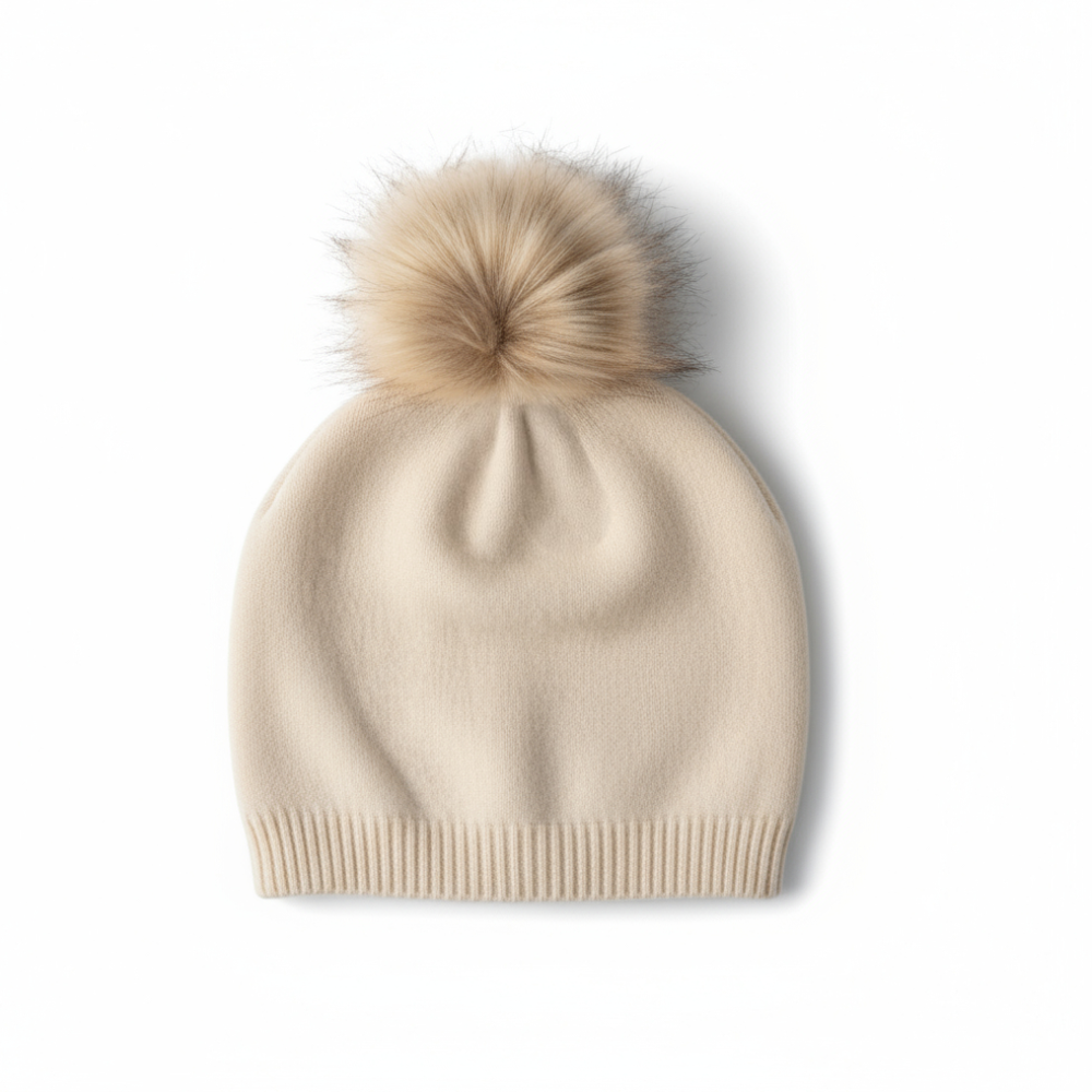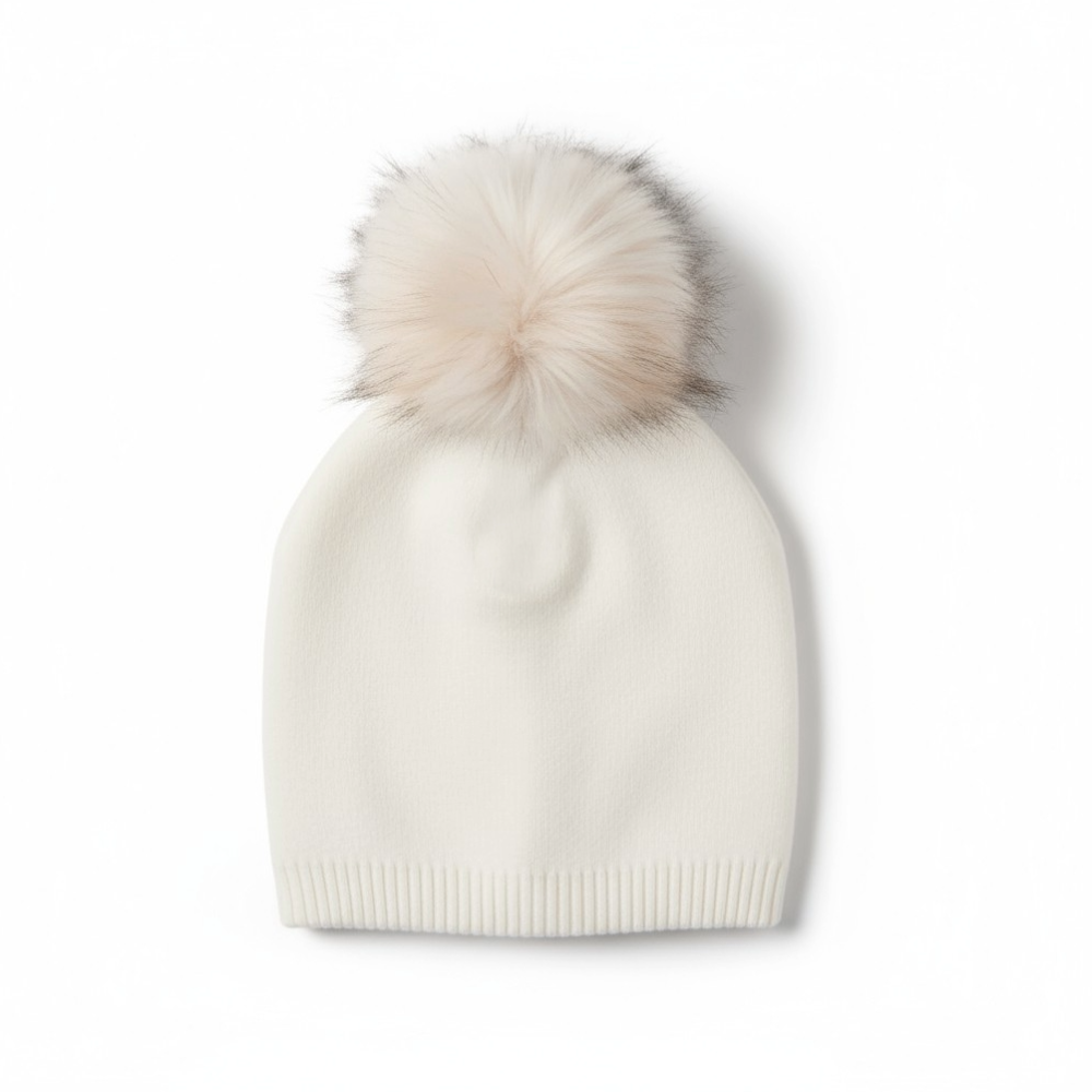 •Luxurious Cashmere with Real Fur Matching Pom
