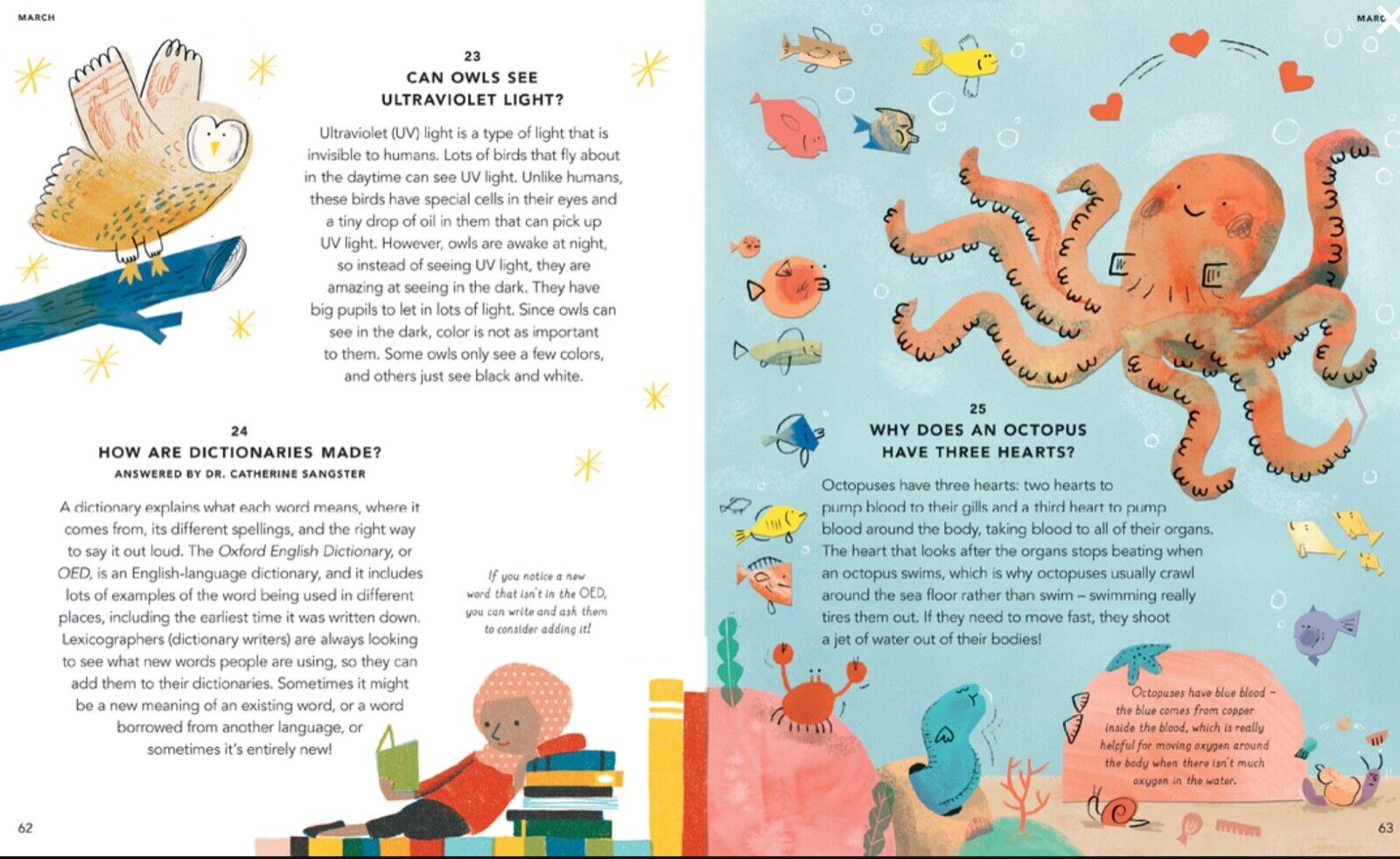 Questions like 'Why do tigers have stripes?' or 'How do our bodies make earwax?' OR if you have a space enthusiast like I do, they probably read the question first and just had to know the answer to 'How long has the storm on Jupiter been raging for?'