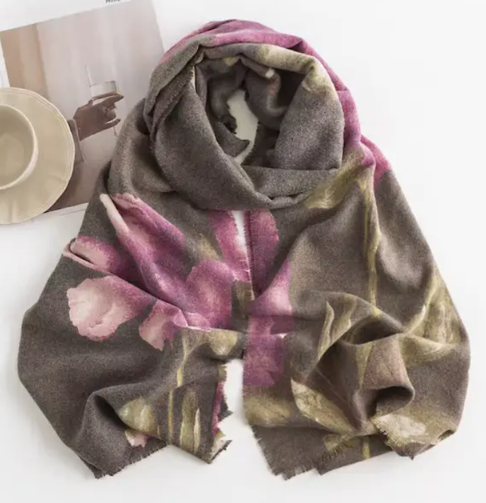 Wrap yourself in elegance with this scarf, a perfect blend of style and comfort. Crafted from soft fabric, this scarf features a stunning pattern that effortlessly elevates any outfit. Whether draped over your shoulders or styled as a cozy neck accessory, this scarf adds a touch of sophistication to your look.