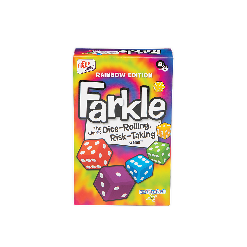 Become a Farkle Fanatic with this Classic Dice-Rolling, Risk-Taking Game. Take a risk and keep rolling to build your score, or play it safe so you don't lose your points in a Farkle. It's a fight to the finish in this fabulously fun game of strategy and luck! Comes with 6 dice in the colors of a rainbow, a shaker cup, 5 score sheets, and rules.