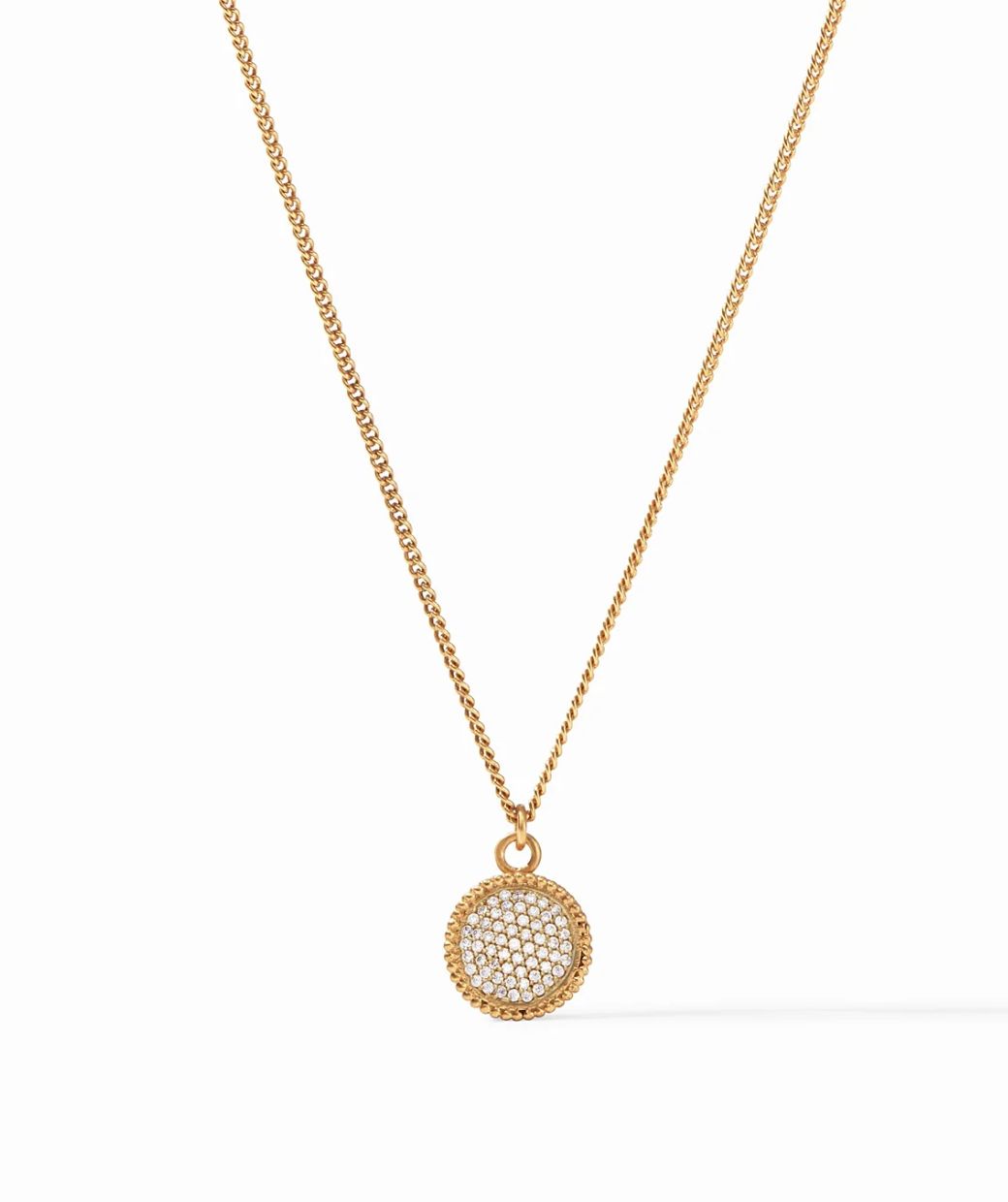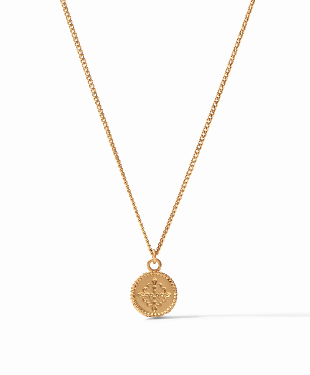 One necklace, two ways to wear it—one side features a glittering gemstone, while the reverse side features a fleur-de-lis intaglio.