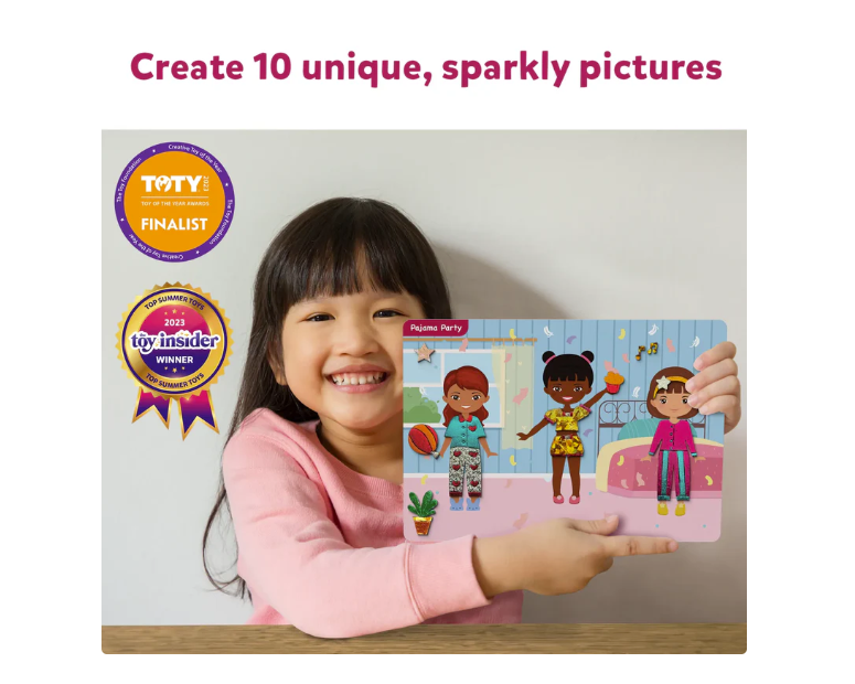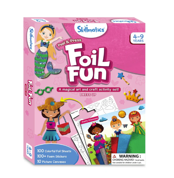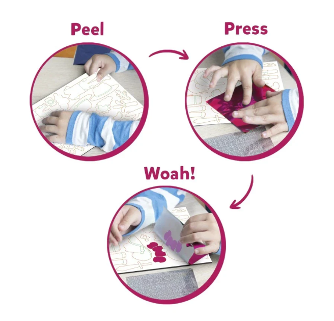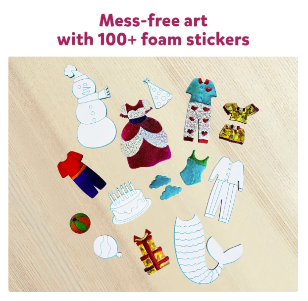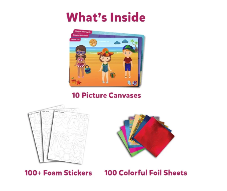 Foil Fun is a magical, mess-free activity to inspire hours of creative fun! Let their imagination soar as they color foam stickers with sparkly foil sheets to dress up the characters and create masterpieces!