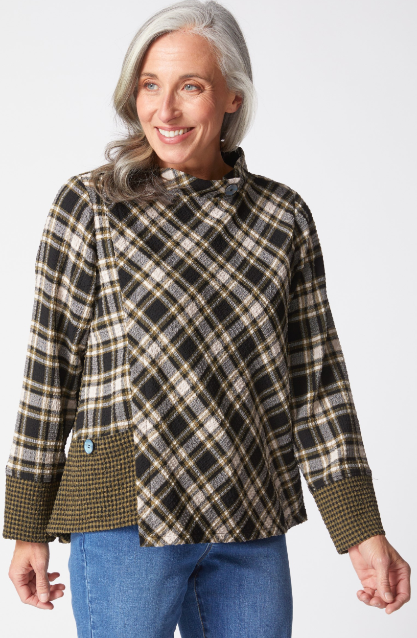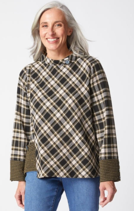 The Habitat Girl Gone Plaid Asymmetrical Button Cuff Top redefines casual sophistication with its distinctive asymmetrical cut and refined button cuff accents. Designed for effortless comfort and style, this piece elevates your everyday wardrobe with a subtle yet striking edge. Versatile enough to complement jeans or skirts, it seamlessly blends relaxed ease with polished appeal for a wardrobe essential that transitions gracefully from day to night.