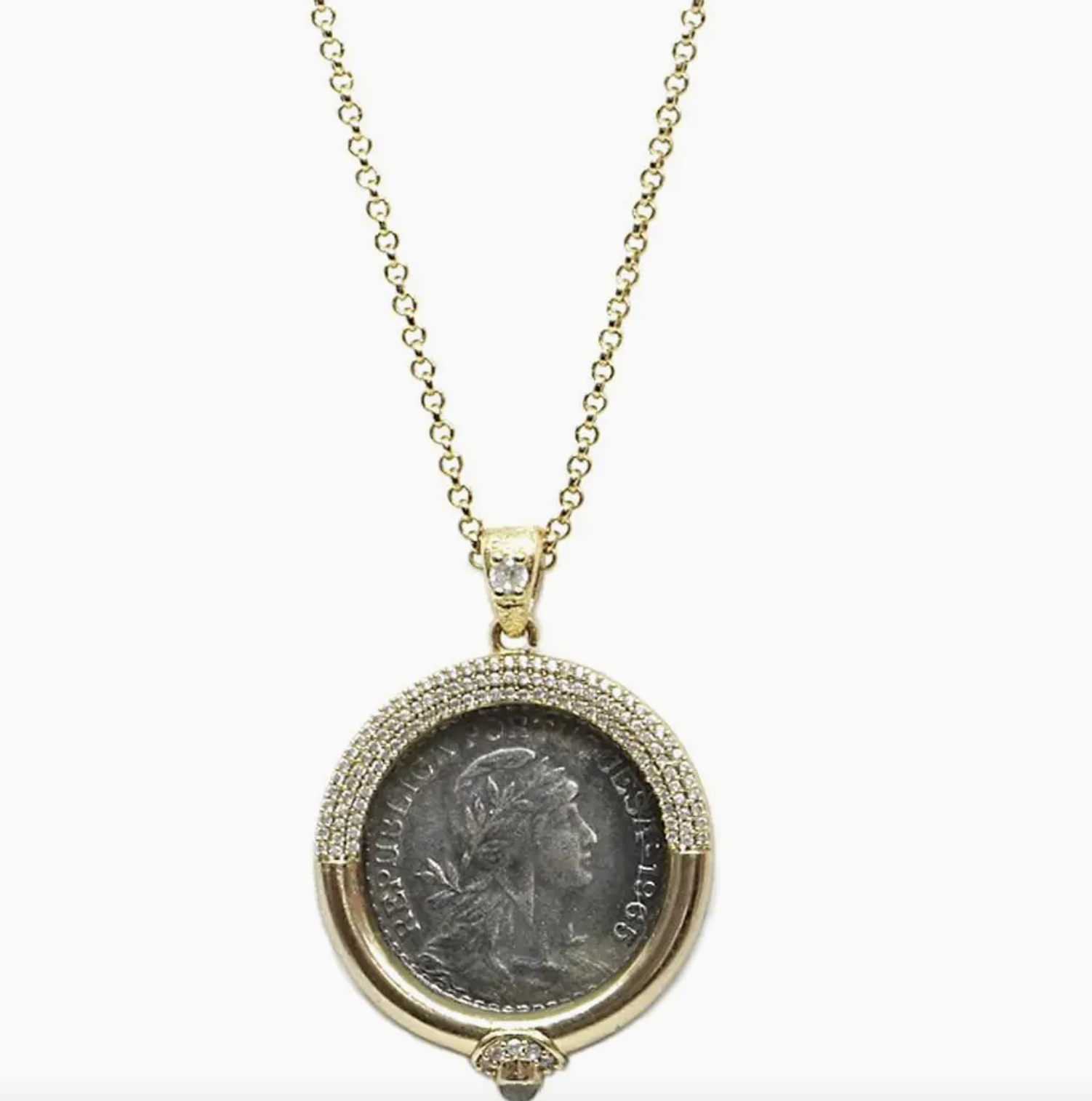 During her travels across the globe, designer Briana Erin has collected antique coins from their native regions. She incorporates fragments and elements into her designs, creating wearable, historic treasures.