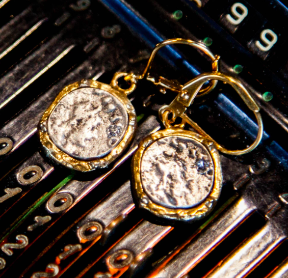 During her travels across the globe, designer Briana Erin has collected antique coins from their native regions. She incorporates fragments and elements into her designs, creating wearable, historic treasures.