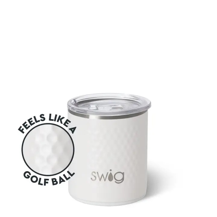 Raise a toast to your favorite game with the Golf Ball Lowball Tumbler — inspired by the iconic dimpled design of a golf ball. Holds up to 12oz — perfectly sized for whiskey, cocktails, or any favorite spirit, this tumbler adds a sporty touch to your drinkware collection. With being constructed of stainless steel and topped with the spill-resistant, removable slider lid, this tumbler keeps drinks cold 9+ hours and hot 3+ hours.