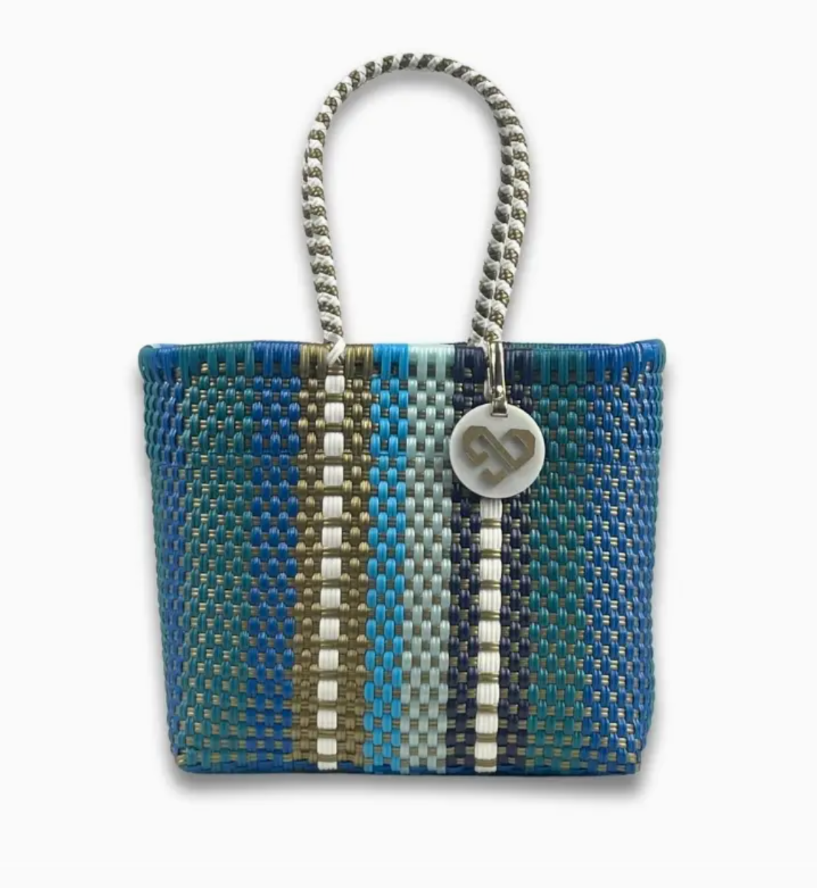 This handwoven XS tote bag is an artisan-made masterpiece crafted from 100% recycled plastic. Featuring a stunning one-of-a-kind design and comfortable handles, these sustainable Mexican bags are lightweight, waterproof, and perfect for beach trips, farmer's markets or running errands. Each one represents creativity and a commitment to the environment, enabling you to showcase your individuality while making a positive impact on our planet. Measurements: Height: 9 in Depth: 5 in Length: 10 in Handles: 8 in