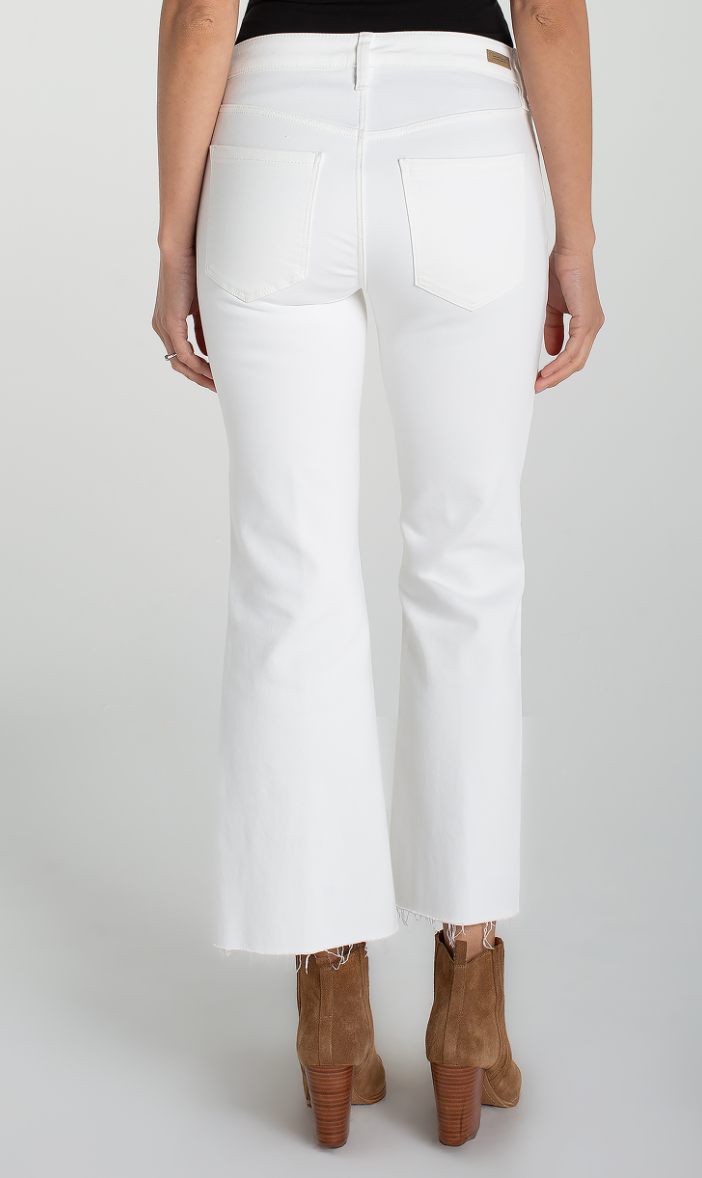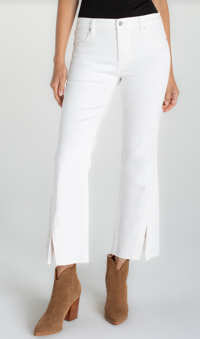 Whether you're off to a concert or brunch with friends, these ankle-cropped flare jeans will have you covered with their edgy split, frayed cuffs. Get all the compliments with these Liverpool Los Angeles Hannah Crop Flare Jeans with a unique twisted slit.