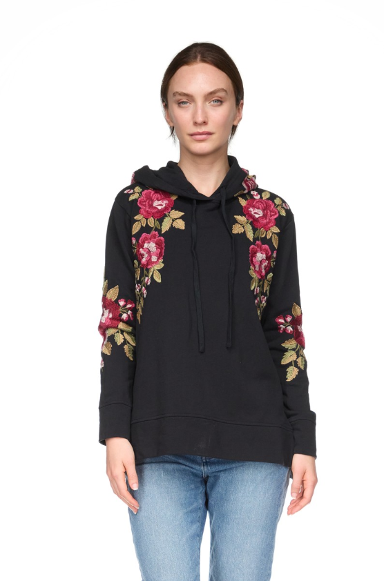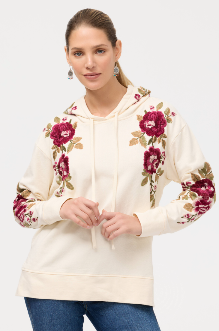 Beautifully embellished with a vibrant floral motif, the Hooded Sweatshirt Tunic is equal parts cozy and stylish. Crafted from 100% breathable cotton, this pullover features an attached hood and drawcord and is finished with side slits for a relaxed fit. Pair with comfortable joggers and fashion sneakers for an elevated casual look.