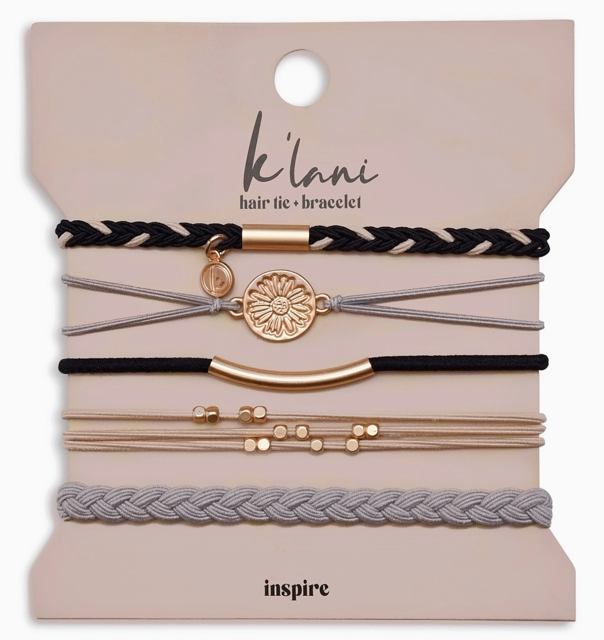 Energize your vibe and INSPIRE others with this classy pack! K'lani hair tie bracelets can be used as a bracelet or hair band.