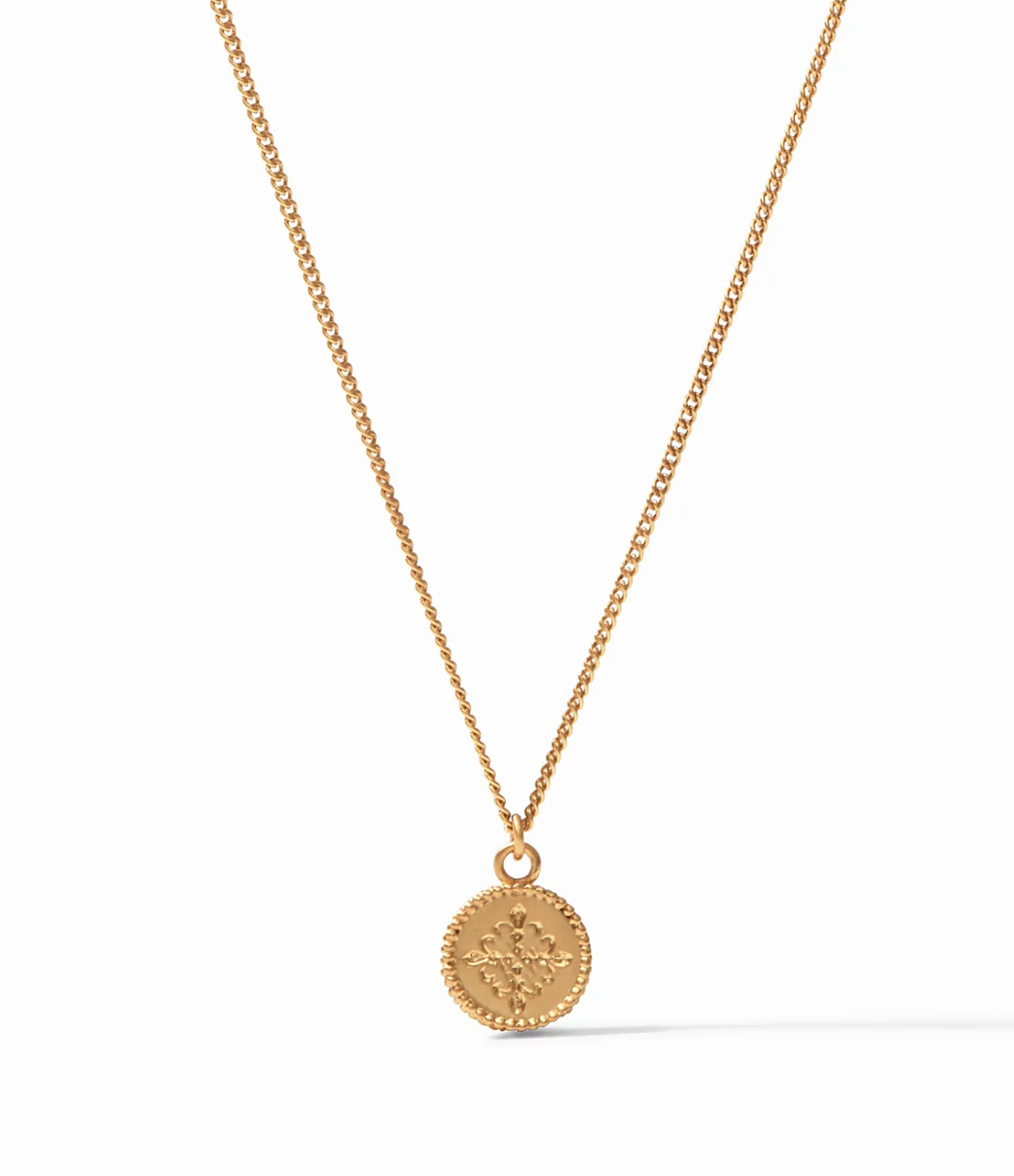 One necklace, two ways to wear it—one side features a glittering gemstone, while the reverse side features a fleur-de-lis intaglio.