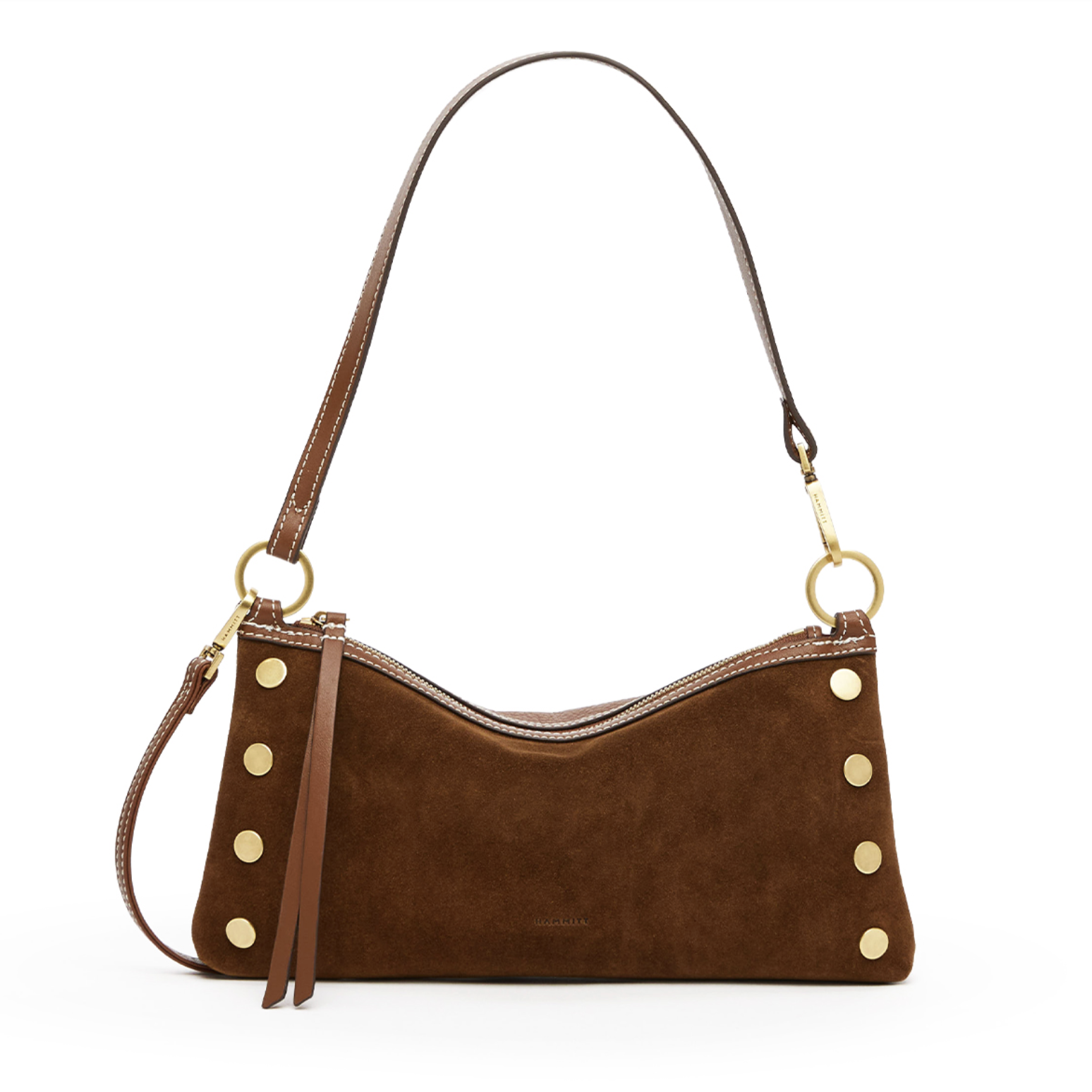This fresh, of-the-moment bag is entering the chat as a must-have companion for nights on the town. Featuring a slouchy but current shape, this versatile little number transitions from a wristlet to a shoulder bag in seconds flat. The Kyle also includes a removable and adjustable crossbody strap, so you can go hands-free. A cousin of our best-selling mahogany suede collection, this leather features a soft pebbled texture with a hint of shine. Embrace the warm allure of this medium brown hue, enriched with a delicate yellow undertone that adds depth and sophistication to any ensemble.