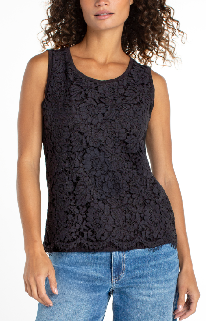 A floral lace overlay with an eyelash edge pretties up a slubbed modal-and-cotton knit tank that you can wear with most anything.