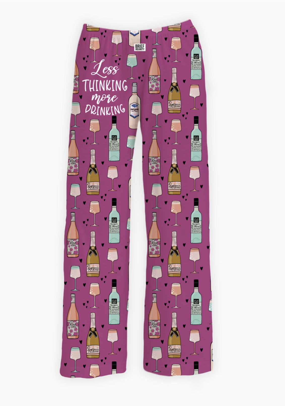 Need some lounge wear for a girl's weekend or night in? These pink pants from Brief Insanity are just what you're looking for. Cheers to more wine drinking and less thinking!