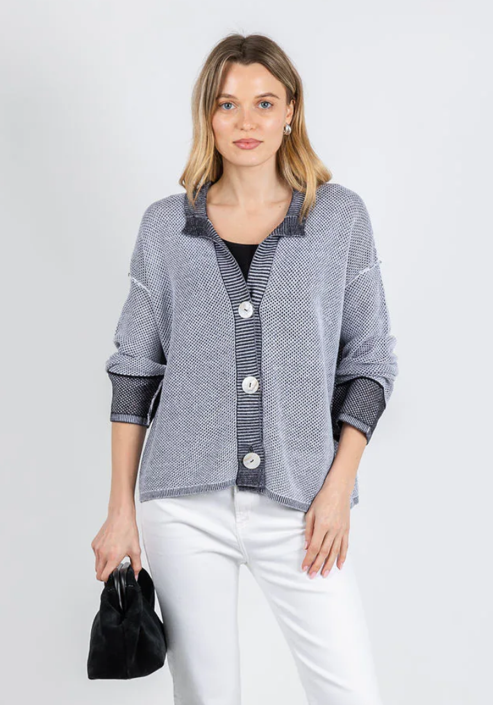 Refined and effortlessly relaxed, Olivia by Habitat's Mesh Stitch Stay Centered Cardigan brings a modern layer of lightness to your wardrobe. The airy open-knit design offers breathable comfort while maintaining a polished, elevated look. Finished with statement buttons and a soft drape, it’s a versatile piece for year-round styling. Layer over a silk cami or fitted tank with tailored denim and loafers for an understated luxury look, or pair with tonal trousers for a chic, monochrome ensemble.