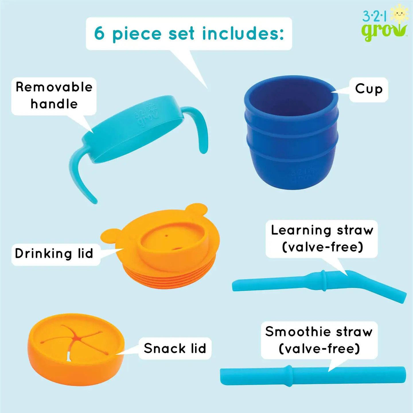 Introducing the 321 Grow Versatile Silicone Training Cup – designed to grow with your child through every stage of development! This innovative cup helps foster independence, offering multiple features to support your little one’s journey from early sipping to open-cup drinking.