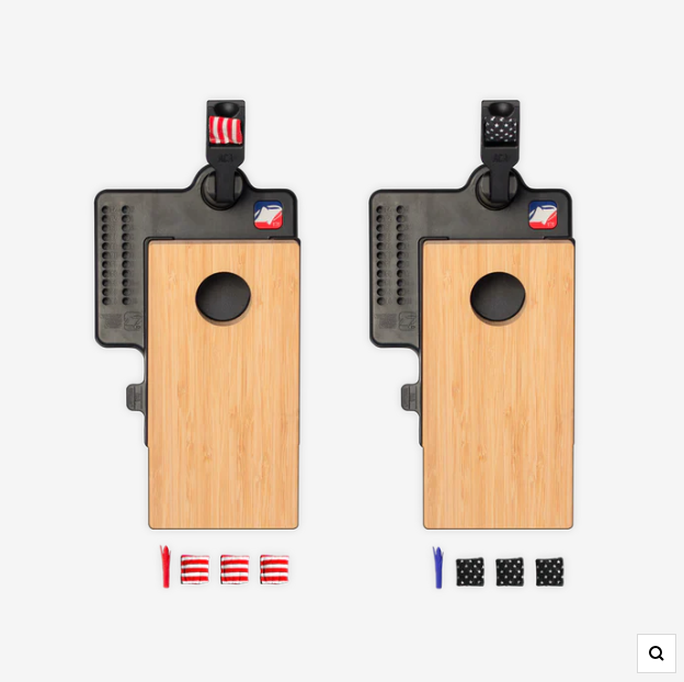 The ACA Double Chuck Mini Cornhole Tabletop Game may look cute but does not lack in a challenge. Bring cornhole anywhere with this compact design that includes a built-in scoreboard and storage compartments for corn-cob-shaped scoring pins and mini stars and stripes cornhole bags.