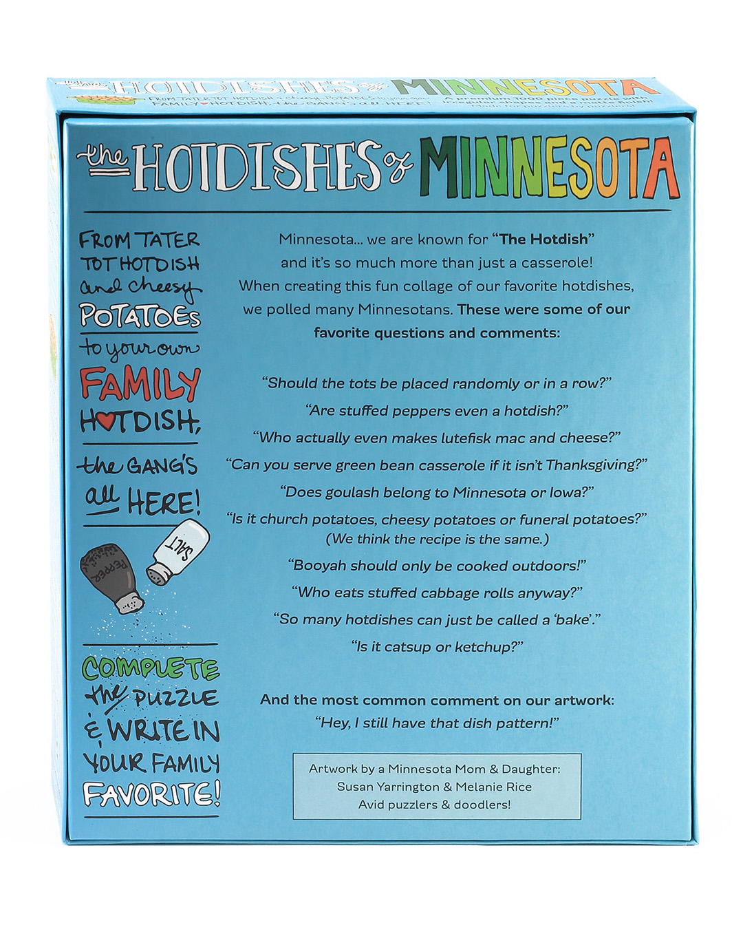 From Tater Tot Hotdish and Cheesy Potatoes to your own family hotdish, the gang’s all here! Complete the puzzle and write in your own favorite!