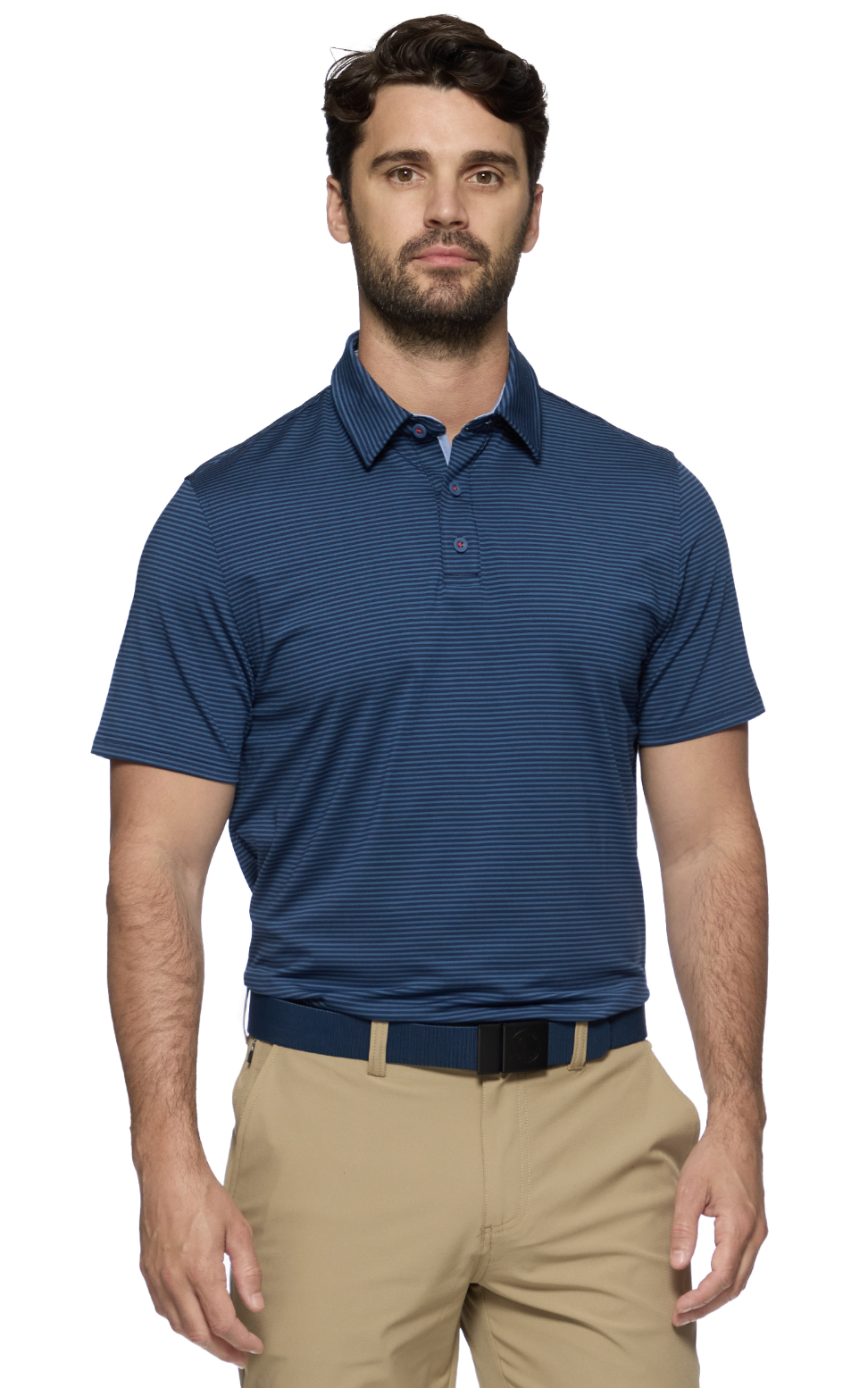 An innovative performance polo designed to look sharp, feel comfortable, and effortlessly transition from a morning on the water to an afternoon on the course and then out to dinner and drinks afterward. Featuring some of our best performance technologies to wick away moisture, maximize mobility, and shield you from the sun plus a versatile heathered look with micro-feeder stripes, this polo will quickly become your go-to. Traditional three-button front placket; rubberized MadeFlex performance patch logo at center back neck. Tailored athletic fit.