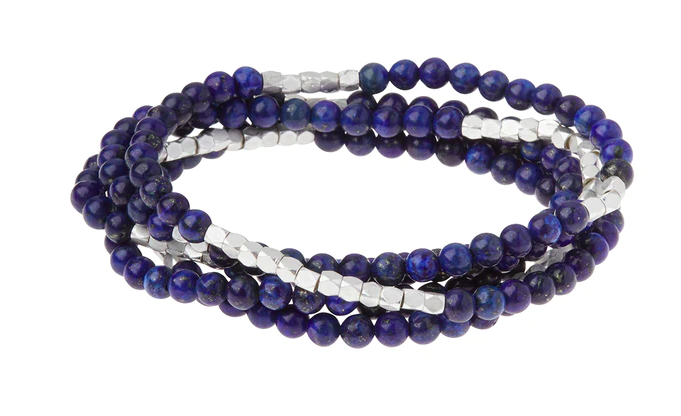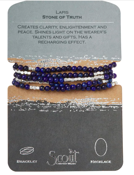 Tap into the energies of the earth. Semi precious gemstones adorn wrist & neckline. Effortlessly converts from bracelet to necklace. Can be wrapped 4-5 times as a bracelet and 1-2 times as a necklace.