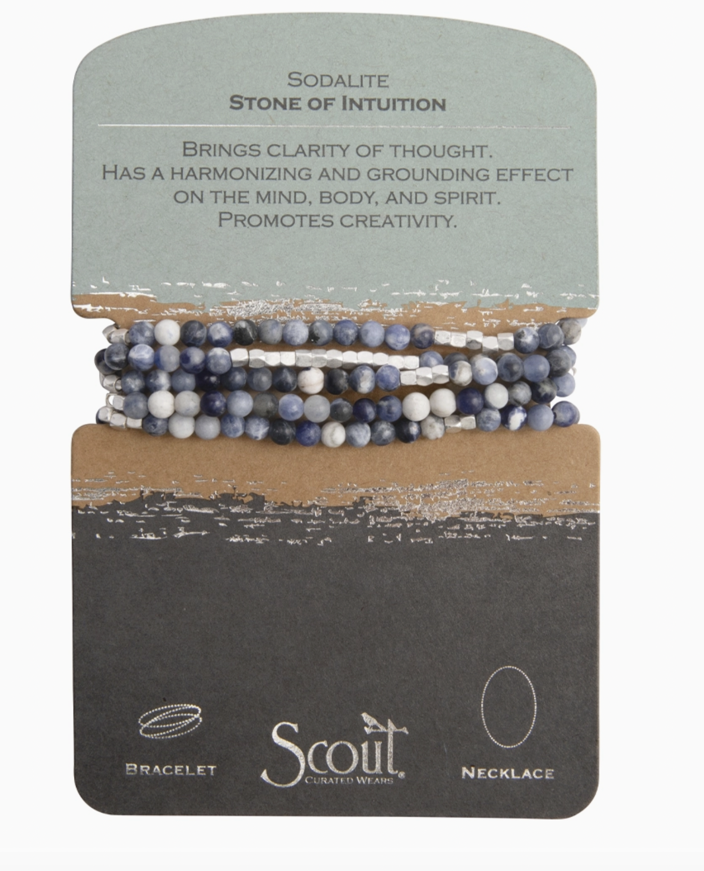 Tap into the energies of the earth. Semi precious gemstones adorn wrist & neckline. Effortlessly converts from bracelet to necklace. Can be wrapped 4-5 times as a bracelet and 1-2 times as a necklace. - 34" length