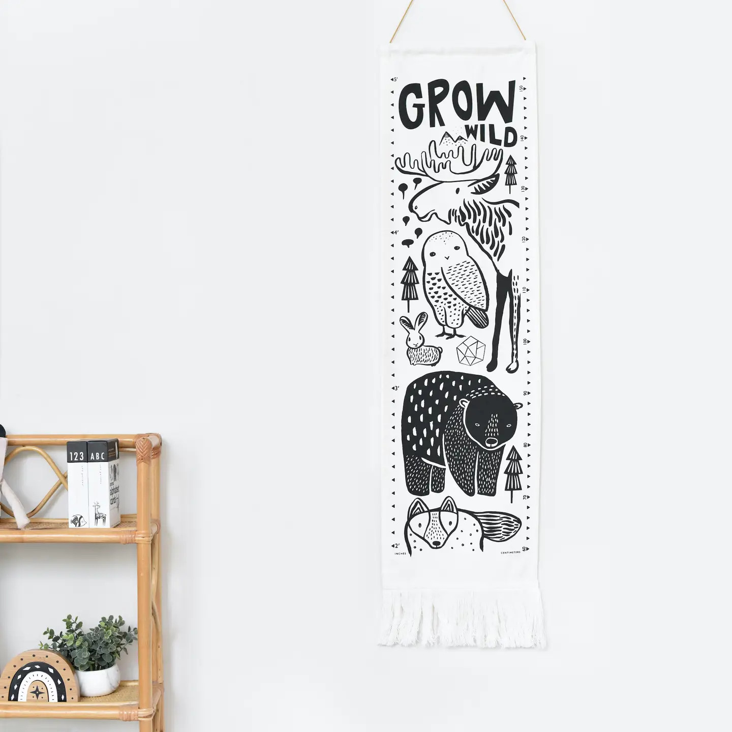 This organic cotton fabric Growth Chart features woodland animals that smile as your little one grows. Its natural materials and lovely illustrations make it a perfect wall accent for a nursery, bedroom, or playroom. Easily hang with the included twine and move as needed.