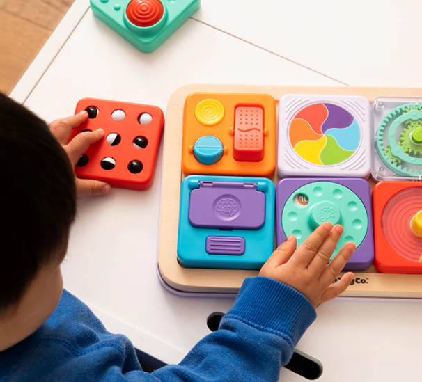 A modular sensory toy, the PlayTab board lets you build a unique experience packed with fine motor challenges, visual fascination, cause-and-effect discoveries, and more. Grab the board here!