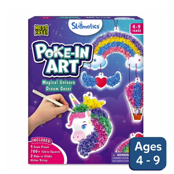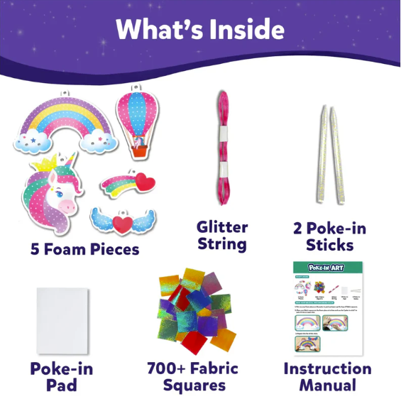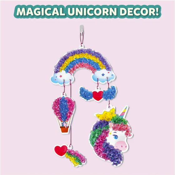 This mess-free activity set sparks creativity as kids create their own magical unicorn dream decor by decorating unicorn-themed foam shapes with sparkly fabric squares and string them all together with the glitter string! It's the perfect way to brighten up a room with DIY room decor! 700+ Fabric Squares
