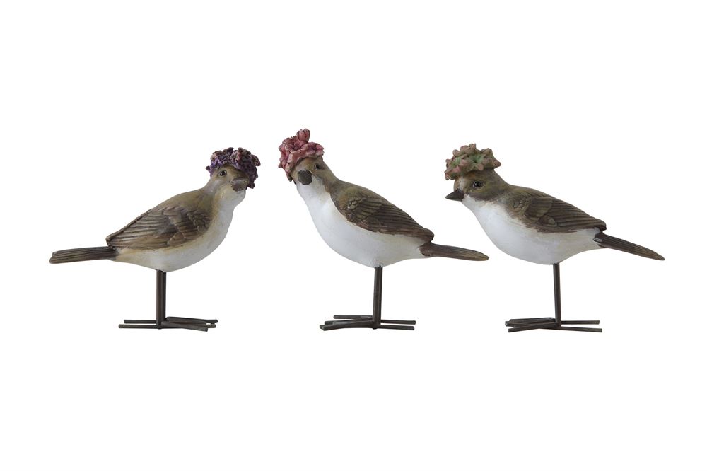 4-1/4"H Resin Bird w/ Flower Hat & Metal Feet, 3 Styles. Sold separately.